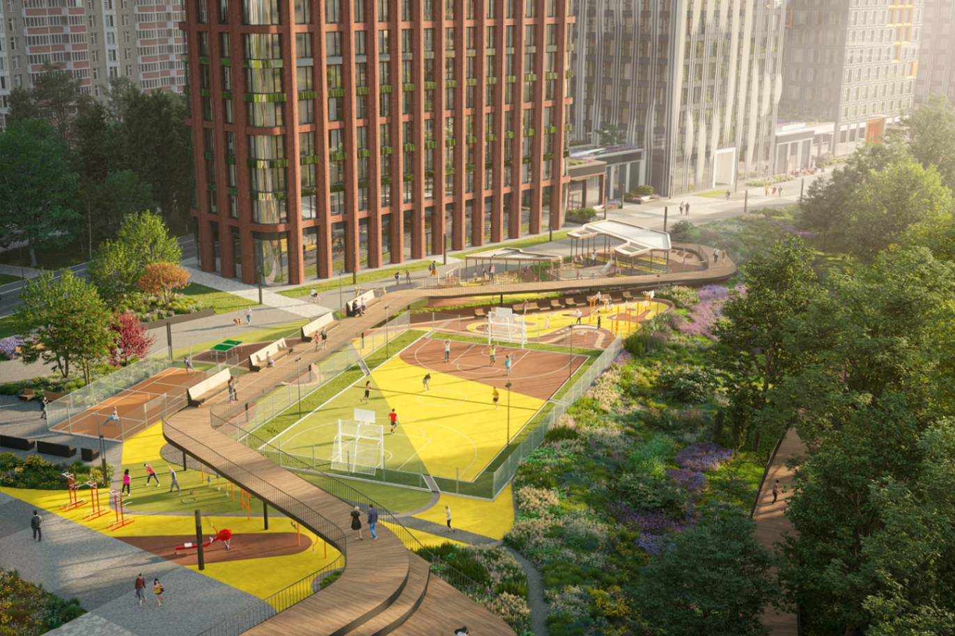 Территория комплекса закрыта от посторонних и свободна от автомобилей.